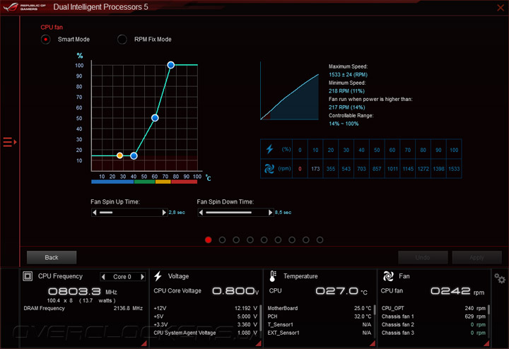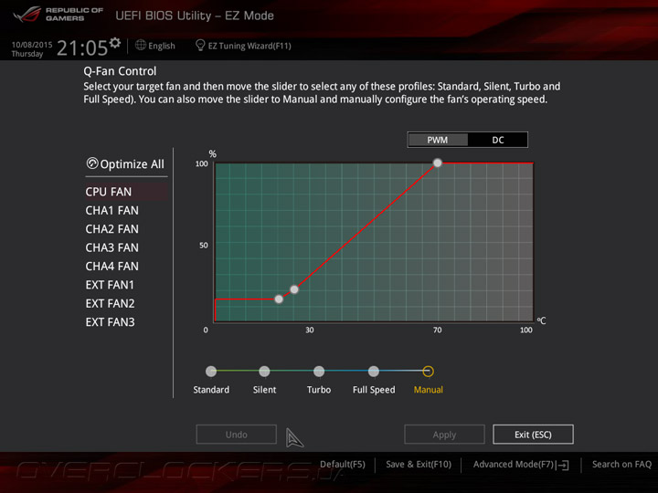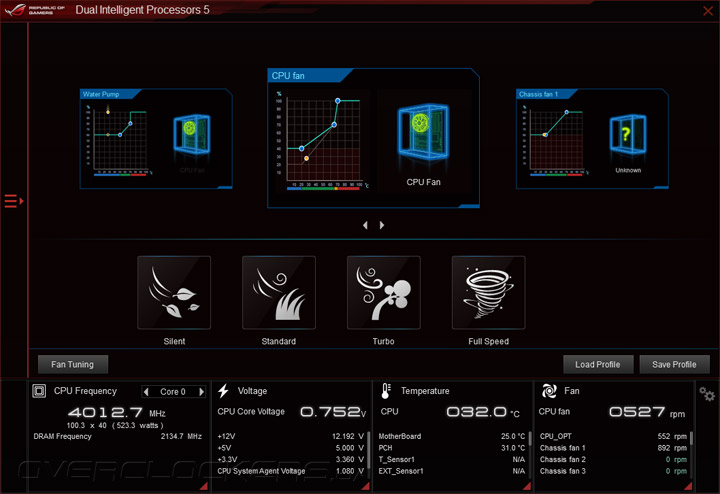 За управление вентиляторами отвечает утилита Fan Xpert 3, с помощью которой выполняется калибровка и определение местоположения каждой крыльчатки, задается один из четырех предустановленных профилей, а для опытных пользователей предоставляется возможность настройки автоматического режима и ручной регулировки скорости вращения.