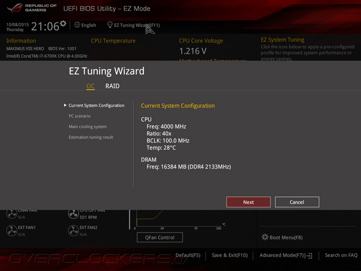 Для повышения производительности можно воспользоваться мастером настройки EZ Tuning Wizard, который дает возможность оптимизировать быстродействие в зависимости от выполнимых задач и типа системы охлаждения.