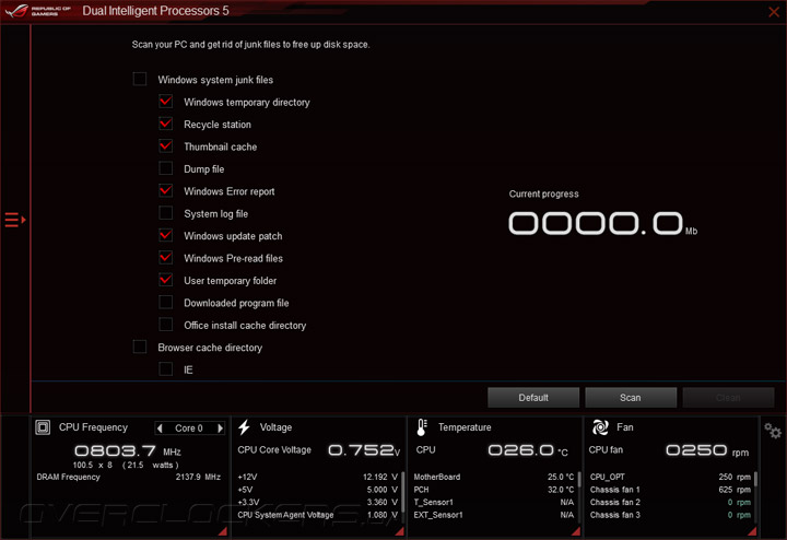 В составе Ai Suite 3 присутствует удобная функция PC Cleaner, предназначенная для очистки операционной системы от временных файлов.