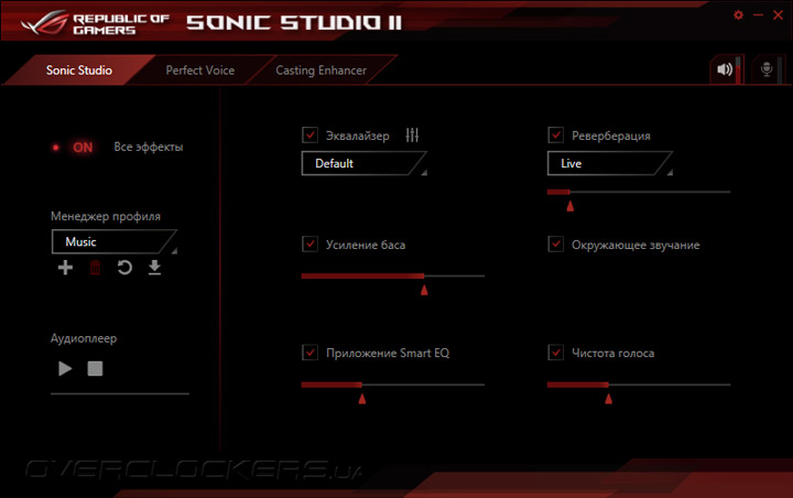 Наконец, для тонкой настройки звуковой подсистемы служит программный продукт Sonic Studio II, выполняющий программную обработку аудиопотока и обеспечивающий работу фирменной технологии Sonic Radar, которая позволяет определять направление к источнику звука в видеоиграх.