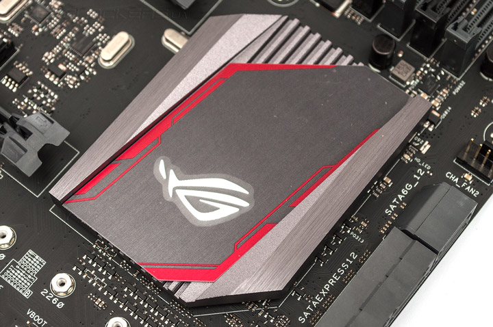 Тепло от микросхемы системной логики отводится плоским радиатором средних размеров, впрочем, благодаря минимальному тепловыделению микросхемы PCH эффективности такой системы охлаждения хватает независимо от режима работы.
