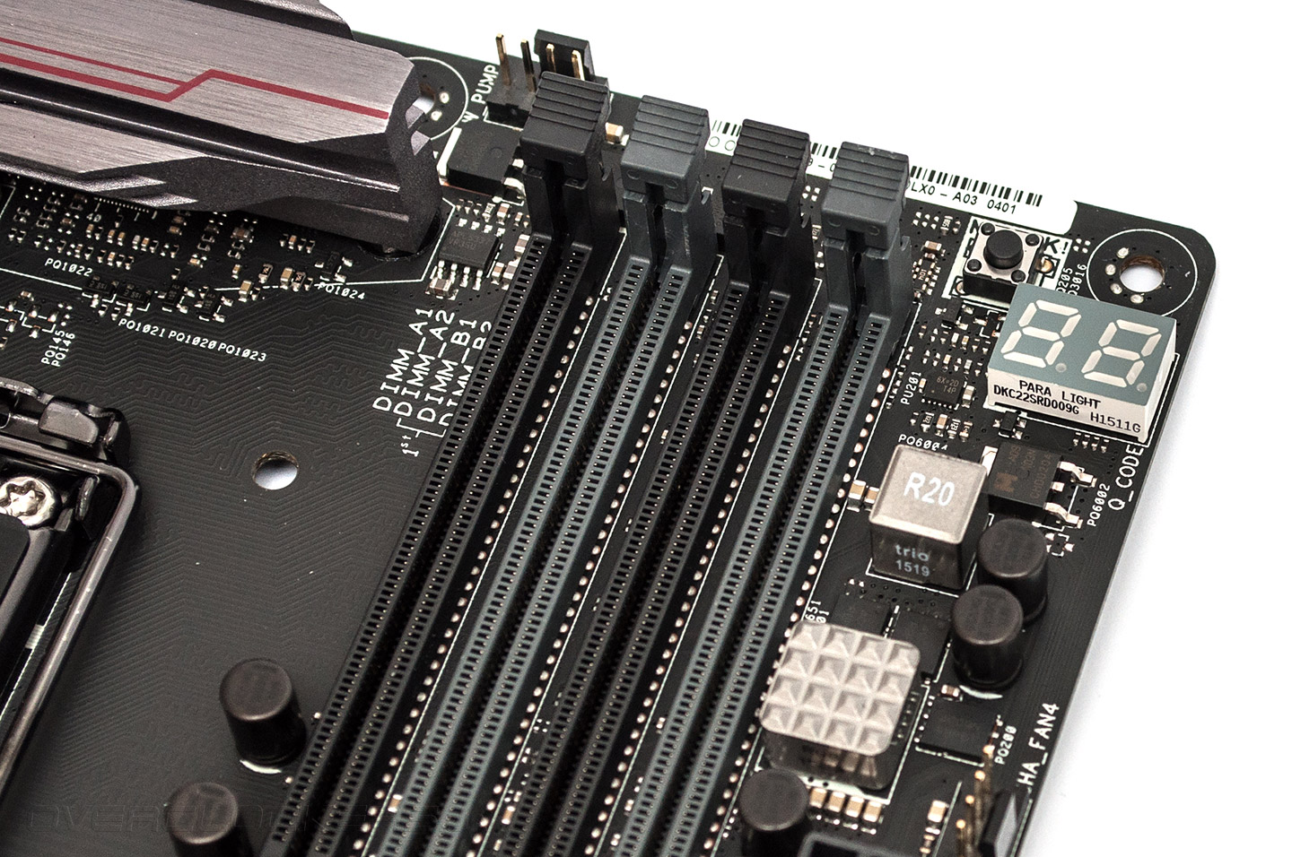 В правом нижнем углу находится индикатор кодов POST и кнопка Mem_OK!, запускающая одноименную функцию, что позволяет загрузить меню настройки даже в случае установки неработоспособных параметров ОЗУ.