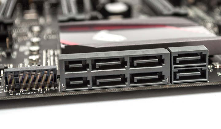 Дисковая подсистема новинки, базирующаяся на возможностях системной логики Intel Z170, состоит из двух портов SATA 6 Гбит/с и двух разъемов SATA Express 10 Гбит/с, каждый из которых совмещен с парой интерфейсов SATA 6 Гбит/с. Запоминающие устройства можно объединять в массивы RAID 0, 1, 5 и 10, а также активировать технологию интеллектуального кэширования Intel Smart Response.