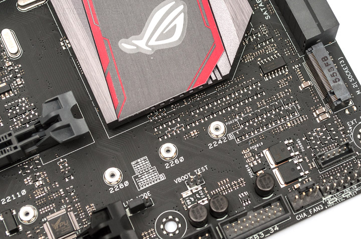 Для установки твердотельных накопителей формата NGFF предназначен порт M.2 «Тип M», к которому подведены четыре линии PCI-E 3.0. Поддерживаются устройства с как с интерфейсом PCI Express, так и SATA.