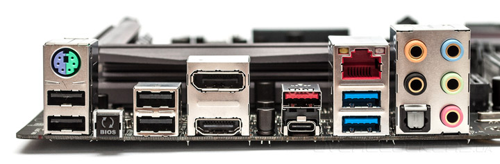 За работу сети Gigabit Ethernet отвечает контроллер Intel I219V, а для подключения различной периферии ASUS Maximus VIII Ranger располагает восемью чипсетными портами USB 2.0 и шестью каналами USB 3.0. Дополнительный контроллер ASMedia ASM1142 обеспечивает функционирование двух интерфейсов USB 3.1 с пропускной способностью 10 Гбит/с, причем, один из них имеет исполнение «Тип С». В итоге, на задней панели Maximus VIII Ranger нашлось место для:
