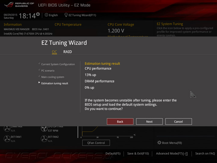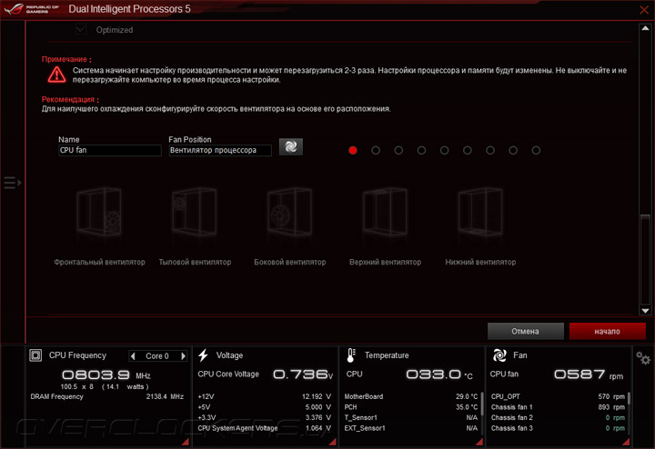 Для повышения быстродействия можно воспользоваться мастером EZ Tuning, который позволяет оптимизировать работу персонального компьютера в зависимости от типа используемой системы охлаждения и характера выполняемых задач.
