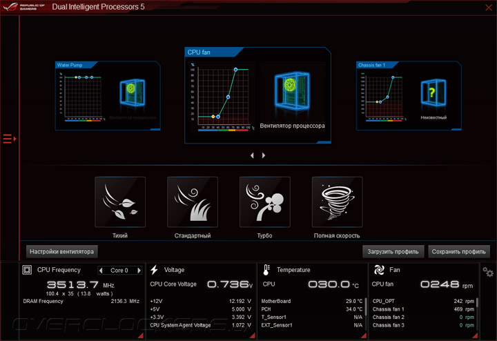 Модуль TPU служит для ручного управления параметрам разгона, а Fan Xpert 3 отвечает за регулировку скоростей вращения крыльчаток охладителей, как в автоматическом, так и ручном режиме.