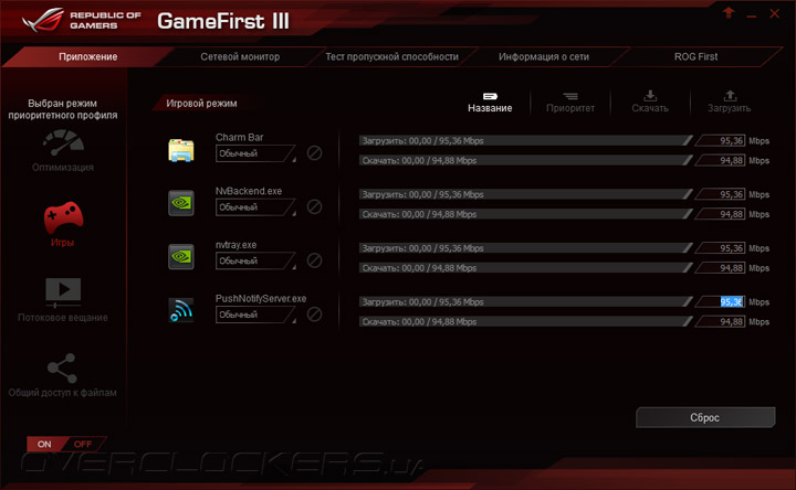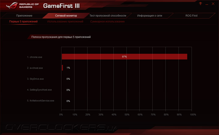 Любители онлайн-баталий возможно оценят функцию управления пропускной способностью сетевого подключения с помощью приложения GameFirst III, позволяющего задавать сетевым пакетам игровых приложений наивысший приоритет, в том числе за счет низкоуровневого взаимодействия с маршрутизаторами ASUS, которые поддерживают технологию ROG First.