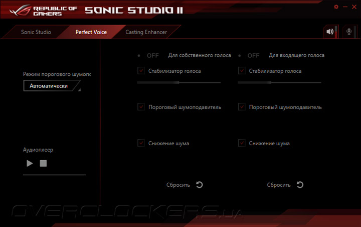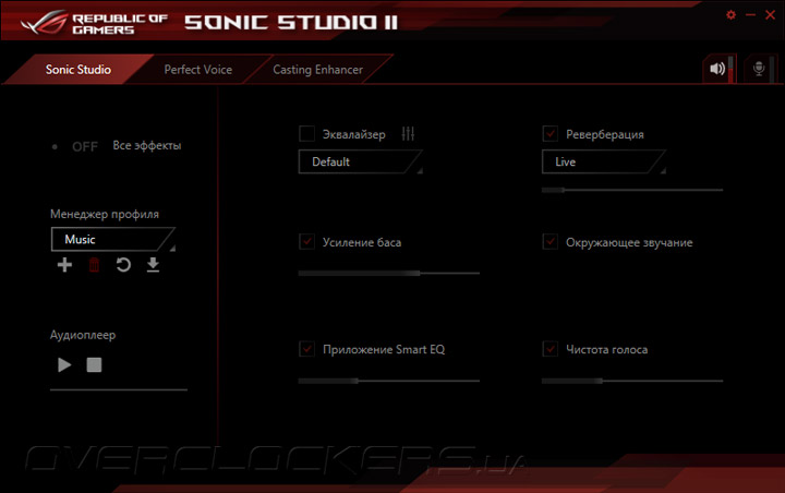 Наконец, нельзя не отметить удобную и функциональную утилиту Sonic Studio II, предназначенную для реализации программных эффектов обработки звука, шумоподавления для микрофона и повышения разборчивости голоса.