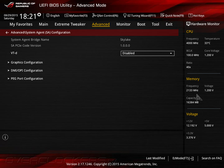 Подменю System Agent (SA) Configuration предназначено для управления интегрированным графическим адаптером и встроенным северным мостом, а ROG Effects позволяет отключить светодиодную подсветку.