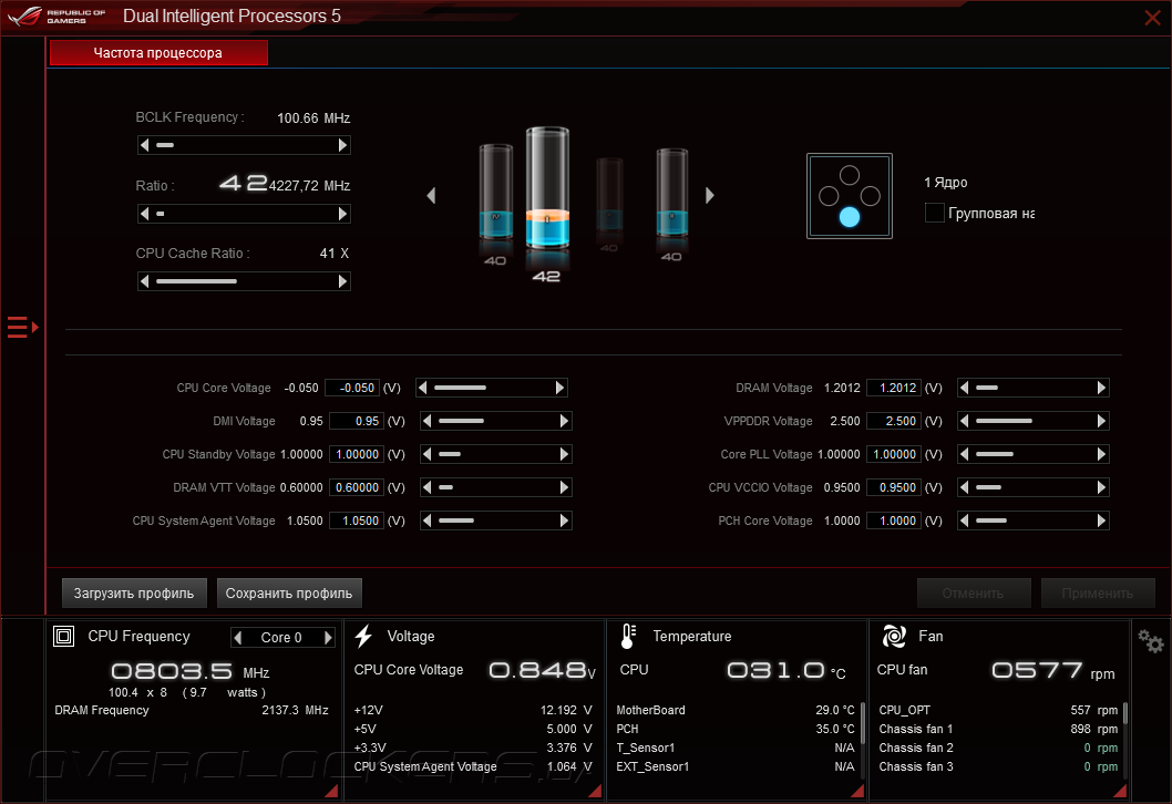 Здесь же задается ряд второстепенных напряжений, тонкая настройка которых способна повысить результаты разгона.