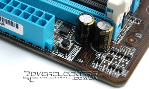 Возле слотов памяти находится кнопка Memory OK. В случае возникновения проблем с загрузкой системы при несовместимых настройках памяти достаточно нажать на эту кнопку и плата подберет оптимальные установки для DDR3. И уже не надо входить в BIOS и вручную сбрасывать настройки памяти.