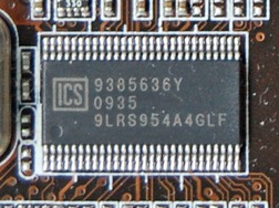 За аппаратный мониторинг и порты ввода/вывода отвечает контроллер Winbond W83667HG-A. В качестве тактового генератора используется чип ICS 9LRS954A4GLF.