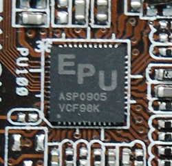 Управление питанием осуществляется специальным контроллером EPU (Energy Processing Unit, разработка Analog Devices), который заодно отвечает и за энергосберегающие функции платы.