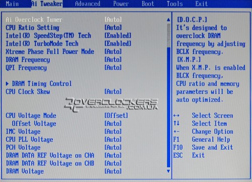 Плата автоматически регулирует напряжения при выборе D.O.S.P., но до какого уровня они повышаются неизвестно, все соответствующие параметры остаются в положении Auto. Узнать их значения можно разве что из-под операционной системы с помощью родных утилит для мониторинга.