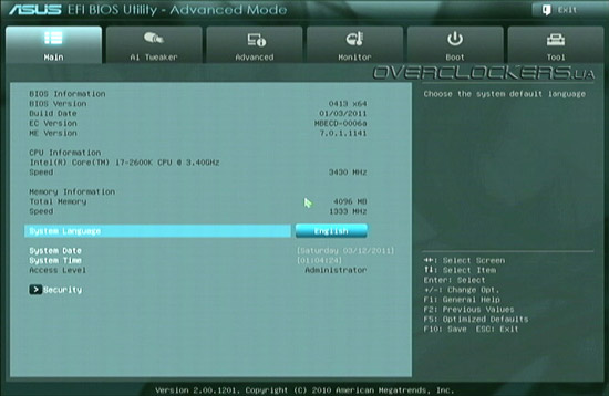 В соперники ASUS P8P67-M Pro (версия микрокода — 0413) была определена системная плата Intel DP67BG — традиционный «спарринг-партнер» решений LGA1155 в нашей лаборатории. Последняя несет в себе прошивку BIOS версии 1900.