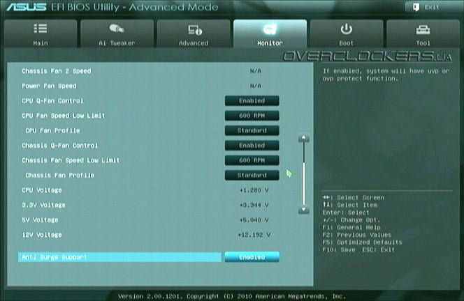 Вкладка мониторинга температур и напряжений содержит пункт «Anti Surge Support», при активации которого материнская плата и установленные в нее карты расширения будут защищаться от электрических всплесков.