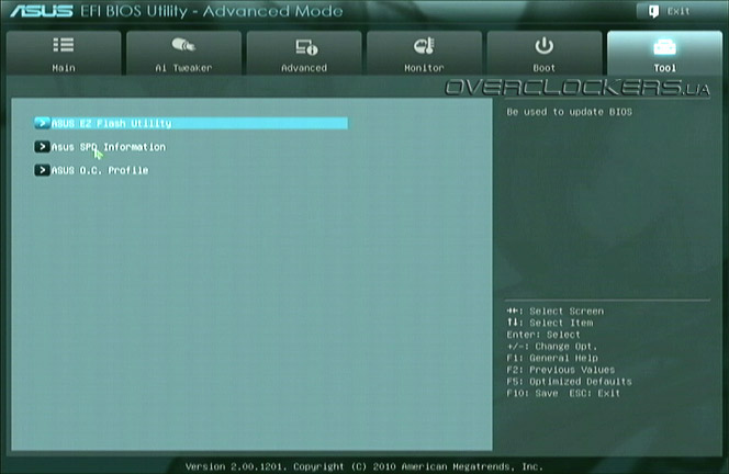 Вкладка Tool («Инструменты») предоставляет возможность обновлять микрокод UEFI, считывать информацию с SPD модулей памяти, сохранять и загружать оверклокерские профили.