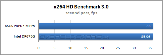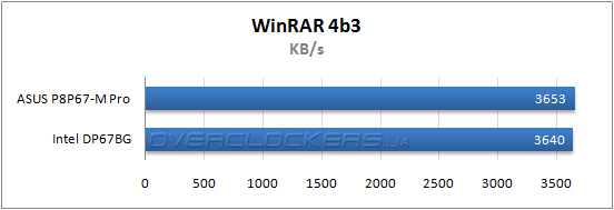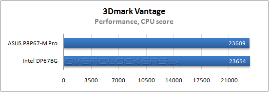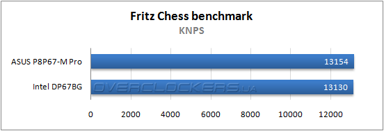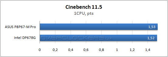 Испытание приложением Cinebench в режимах 1 CPU и xCPU не позволяет выделить одну из плат, и если для Intel DP67BG ничья является почетной, то для ASUS P8P67-M Pro как-то не солидно находиться на уровне референса.