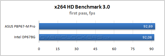 На фоне остальных результатов полкадра при конвертации видео высокой четкости в пользу ASUS P8P67-M Pro выглядят довольно внушительно.