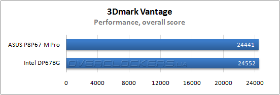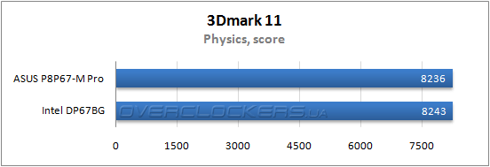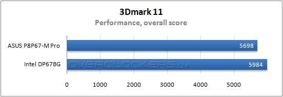 Далеко не идеальный, но при этом оказывающий просто-таки магическое влияние на рядовых пользователей, бенчмарк 3DMark 11 вовсю трубит о победе полноразмерной DP67BG над конкурентом — 5% преимущества на пресете Performance.