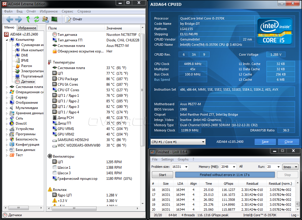 - процессор: Intel Core i5-3570K (3,4 ГГц, 6 Мбайт кэш L3);