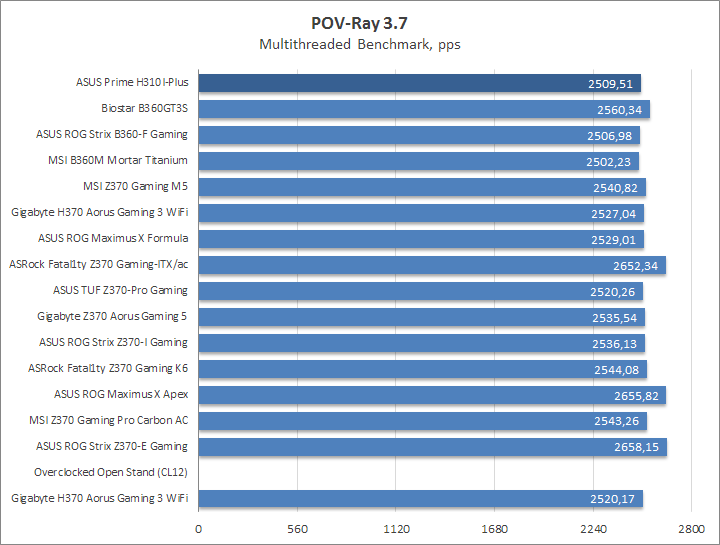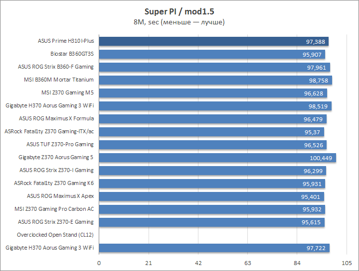 Prime H310I-Plus хорошо показала себя в простых «считалках», где высокий результат прежде всего зависит от продуктивности ЦП.
