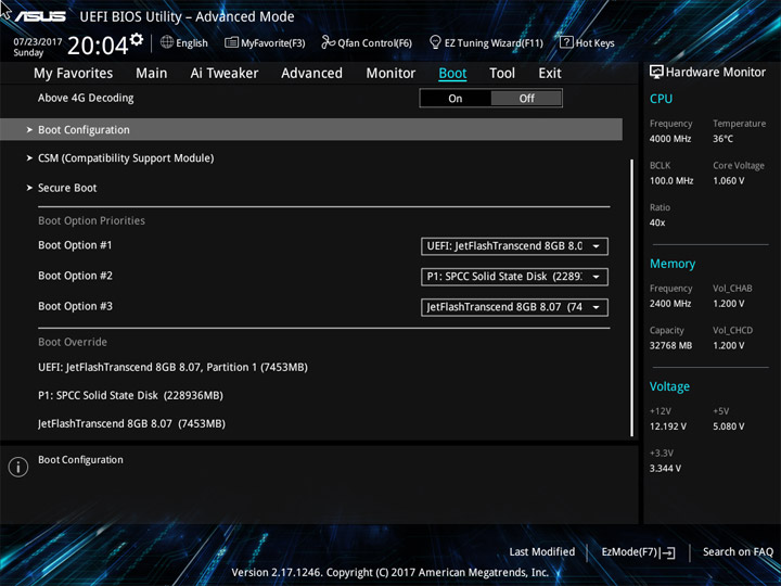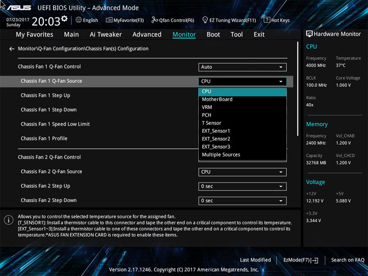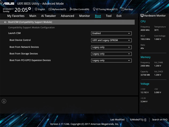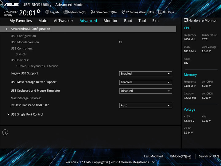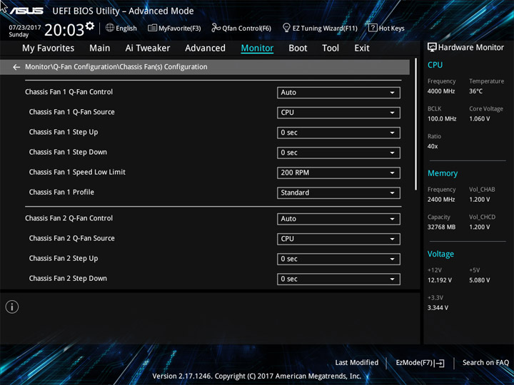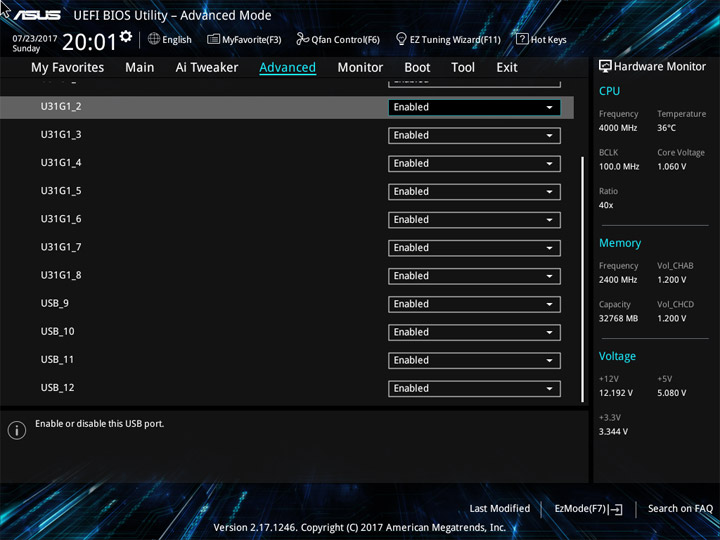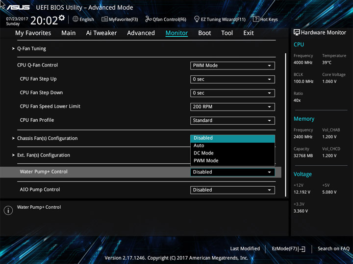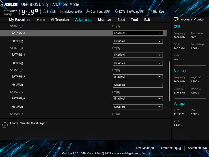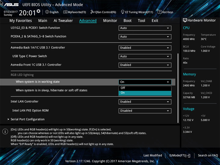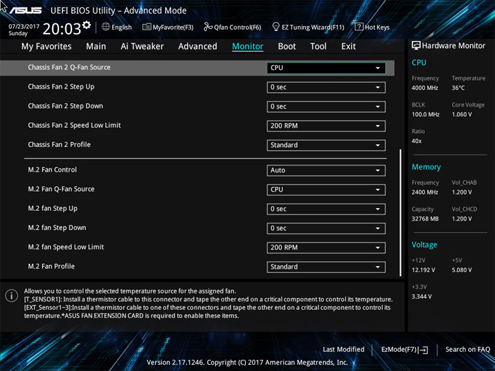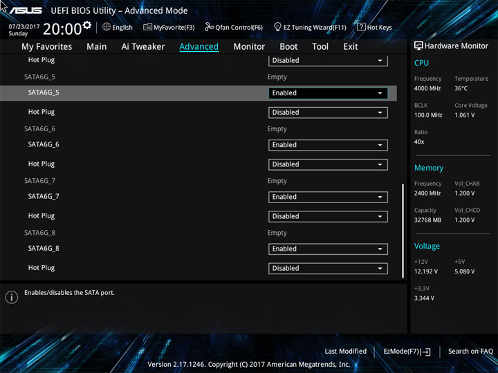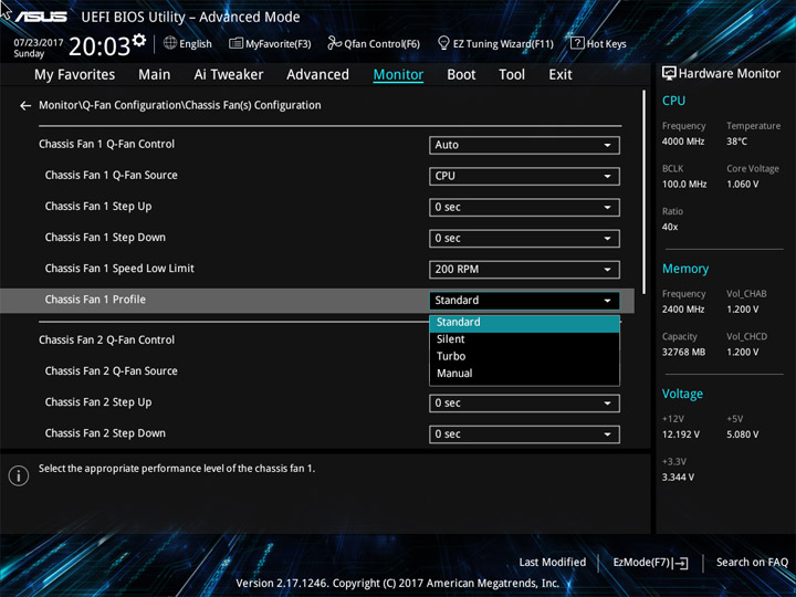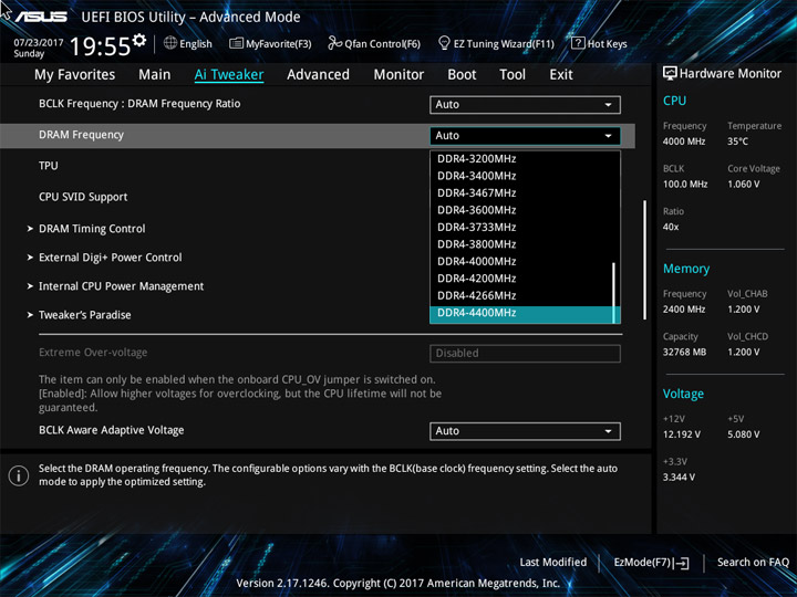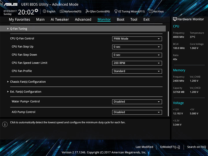 Структура и оформление интерфейса полностью совпадают с аналогичным наполнением плат для ЦП LGA1151. Имеется базовый и расширенный режимы по работе с настройками системы. Используя Ez Mode, можно установить время, активировать XMP, поработать с вентиляторами, заняться распределением приоритета среди загрузочных устройств. По нажатию F11 запустится мастер по автоматическому разгону и (или) по наладке схемы массивов RAID.