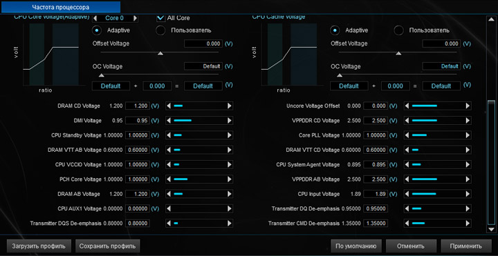 | CPU Cache Voltage Offset (В) | (+/–) 0,001–0,999 | 0,001 |