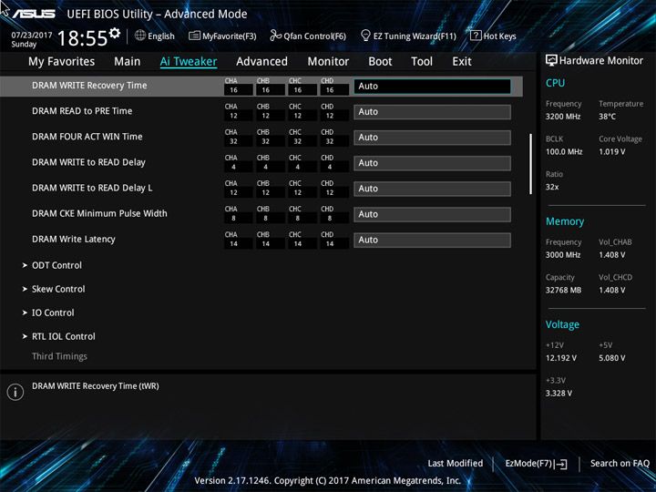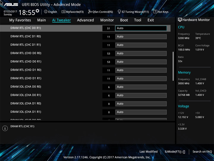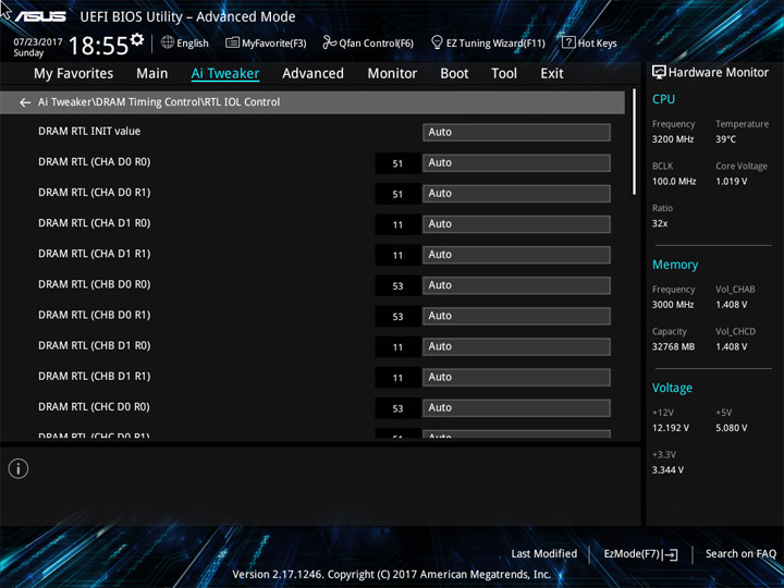 Разгон оперативной памяти прошёл без особых помех, если не считать удивительно высокую, на мой взгляд, отметку напряжения для CPU Cache Voltage. Об этой составляющей ЦП чуть позже. Для четырёхканального двухрангового (двухстороннего) набора памяти разгон составил 3 ГГц, что является близким к его истинным возможностям. Для процессора пара из множителя «32» и напряжения величиной 1,02 В оказалась не случайной, она была получена в ходе экспериментов по поиску стабильной работы. CPU IO и SA Voltage тоже пришлось немного увеличить.
