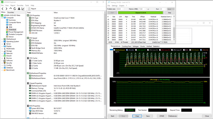 Итак, разобравшись с набором инструментов, можно приступить к тестированию. Этот первоначальный эксперимент я проводил с другой моделью от ASUS — Prime X299-Deluxe, обзор которой выйдет чуть позже. Результаты оказались следующими: