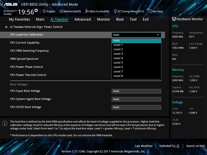 | CPU Load-line Calibration | Auto/Level1…8 | 1 |