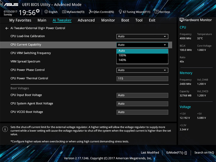 | CPU Current Capability (%) | 100, 140 | 40 |
