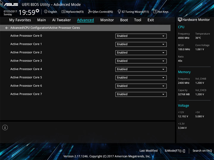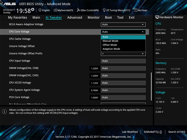 Стабильная работа системы требует достаточного уровня напряжения при выбранном множителе, однако постоянное повышение CPU Core Voltage способно привести к быстрой активации троттлинга. Если не удавалось добиться стабильности при работе Cinebench R15, то множитель понижался и снова осуществлялся полный цикл по подбору минимального, но достаточного питающего напряжения для ЦП.