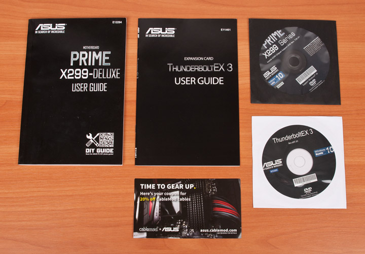 Fan Extension Card и набор термопар уже встречался у некоторых продуктов престижной категории от ASUS. Эти компоненты тоже продаются отдельно, но для владельца Prime X299-Deluxe окажутся частью штатного набора.