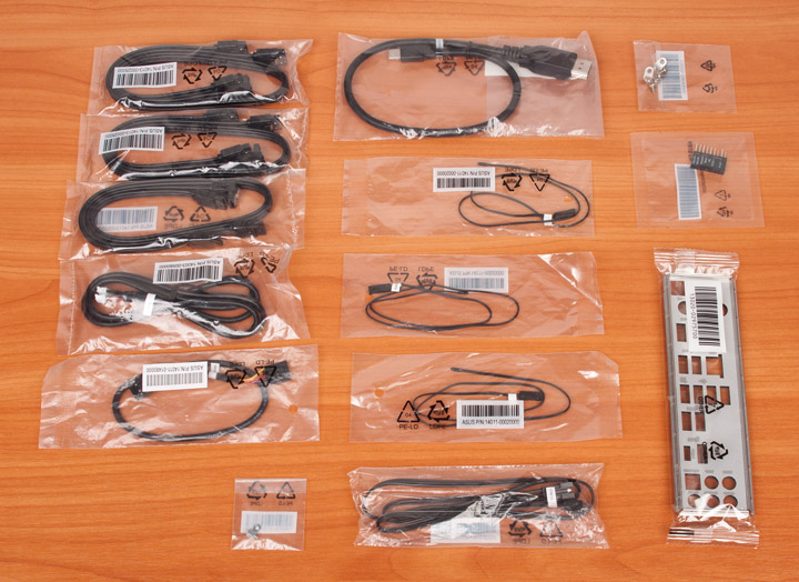 - шесть кабелей SATA 6Gb/s, три из которых с Г-образным разъёмом на одном из концов;