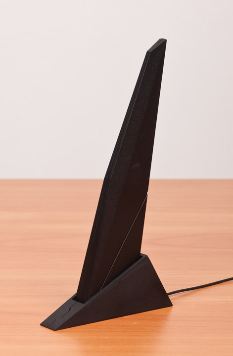 Последний элемент поставки новый, прежде размеры комплектной антенны были скромнее. Ввиду наличия адаптера как для сетей Wi-Fi, так и для WiGig, разумно использовать две независимые единицы. Подготовка к эксплуатации проходит с привлечением специальной фиксирующей положение подставки.