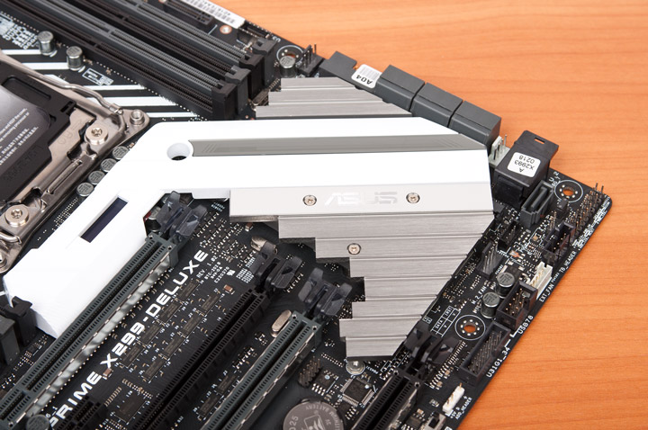 Конструкция радиатора такая же, как и у более простой родственной модели. Он составной, одна часть закреплена на хабе, а другая может послужить охладителем для устройства M.2 типоразмера не больше, чем 2280.