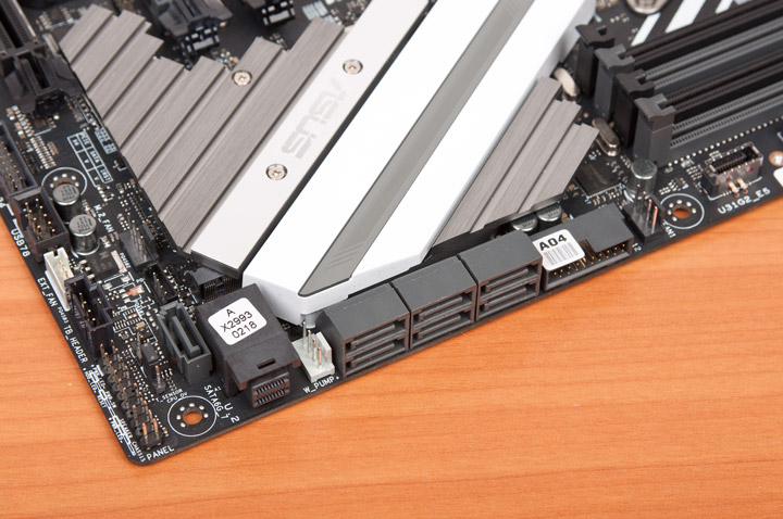 Есть шесть продольных и одно поперечное гнездо SATA. Они дополнены современным интерфейсом типа U.2. Он использует ресурсы линий PCI-E.
