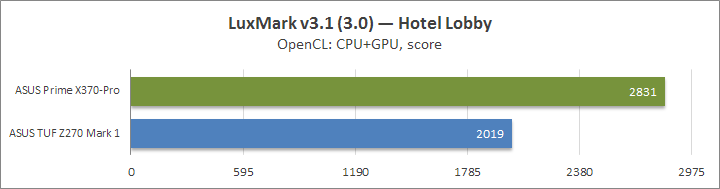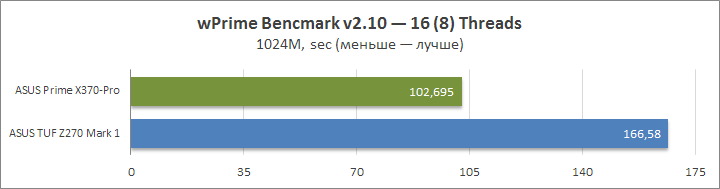 На роль оппонента я выбрал крепкую плату ASUS с похожим позиционированием из нашего архива обзоров (не начального уровня, не «игровую» и не из продвинутой серии ROG Maximus IX), использующую для своих тестов Intel Core i7-7700K. Хочу отметить, прямое сравнение результатов не будет корректным, поскольку используются разные версии операционной системы, драйверов и некоторых программ. Можно лишь получить общее представление о производительности систем. Больше деталей об условиях работы ASUS TUF Z270 Mark 1 можно получить в её обзоре.