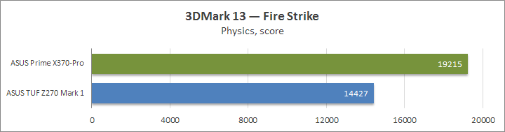 За счёт яркого лидерства в подтесте Physics общий бал Fire Strike также выше, чем у системы с Core i7-7700K.
