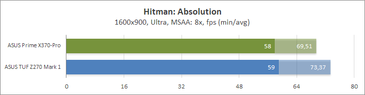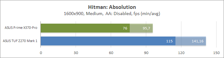 Низкие настройки в Hitman: Absolution демонстрируют уверенное лидерство системы на базе продуктов от Intel, зато повышение нагрузки на видеокарту фактически уравнивает результаты обеих систем.