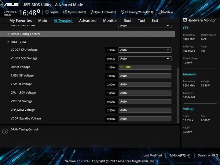 Набор памяти смог заработать на частоте 3200 МГц даже при существенном снижении задержек. Опыты я остановил на конфигурации 14-15-15-28-1T. CR менять негде, единичным он окажется в любом случае. Для стабильной работы необходимыми были значения 1,385 В в поле DRAM Voltage и 0,937 В для SOC Voltage, у последней величины прирост составил самую малость относительно номинального значения.