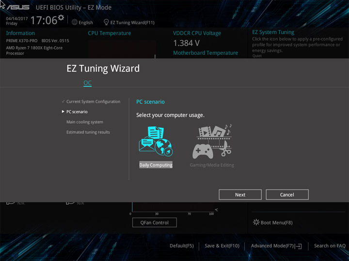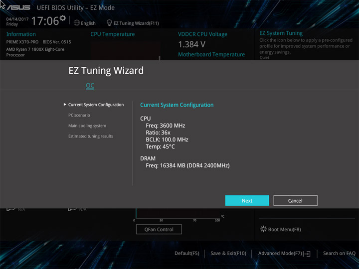 В обзоре UEFI я указывал на наличие интерактивного помощника по разгону системы EZ Tuning Wizard. Его возможности выглядят недоработанными, максимальный разгон не превысит уже знакомых по TPU 3,9 ГГц, а подсистема памяти не затрагивается ни одним из предложенных профилей.