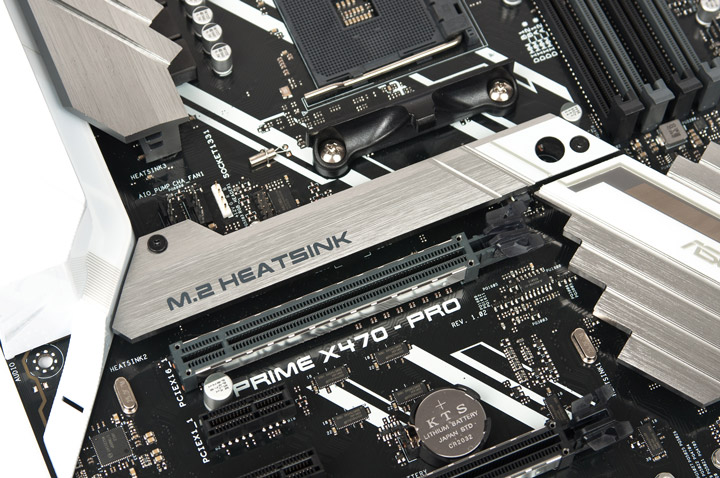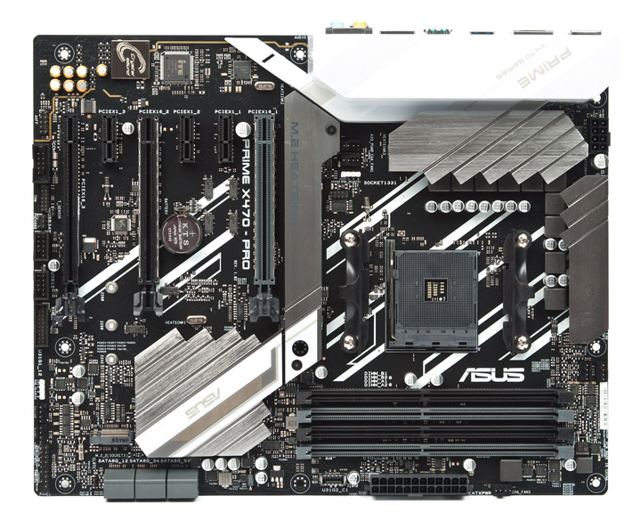 ASUS Prime X470-Pro является примером устройства, где и площади основания, и количества используемого термоинтерфейса полностью достаточно для обеспечения полноценного контакта силовых элементов и охладителей.