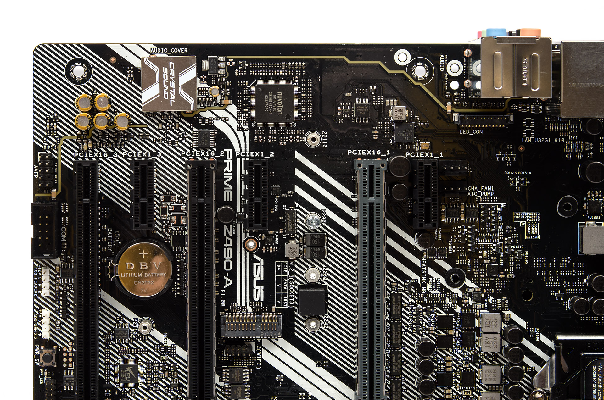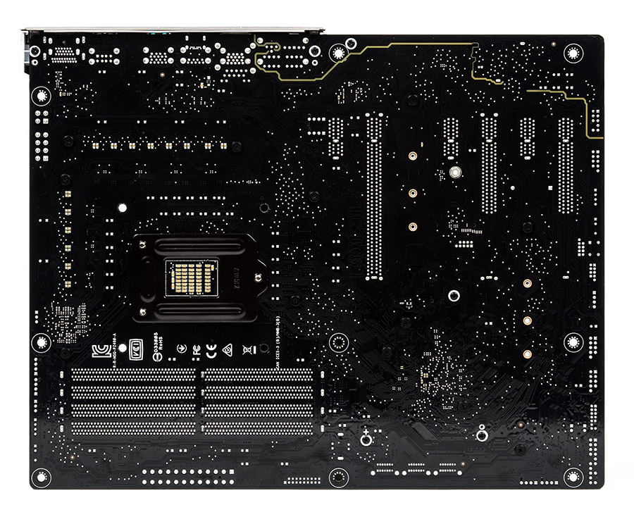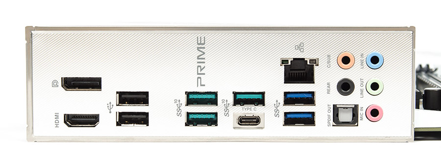 Специалисты ASUS не видят будущих перспектив для выхода PS/2, от него избавились, хотя площадка для порта COM на плате пока ещё есть. В остальном набор интерфейсов можно называть достаточным и подходящим для ПК с разным спектром задач. Многими цветами ненавязчиво переливается наклейка на предустановленной и крепко закреплённой «заглушке».