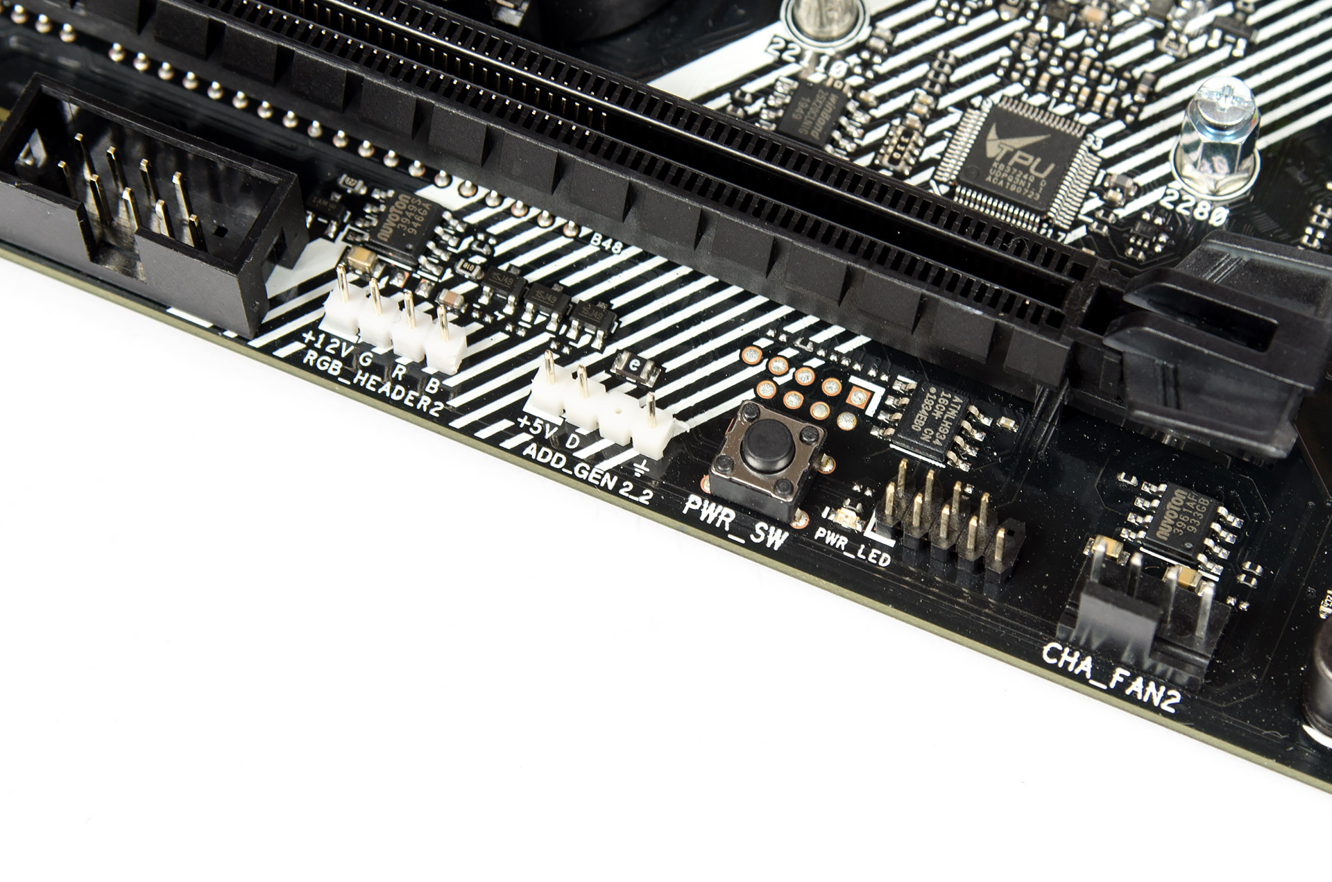 Охладитель M.2 можно установить как сверху, так и снизу, при этом дизайнерский концепт наклонных линий в оформлении будет выдержан.
