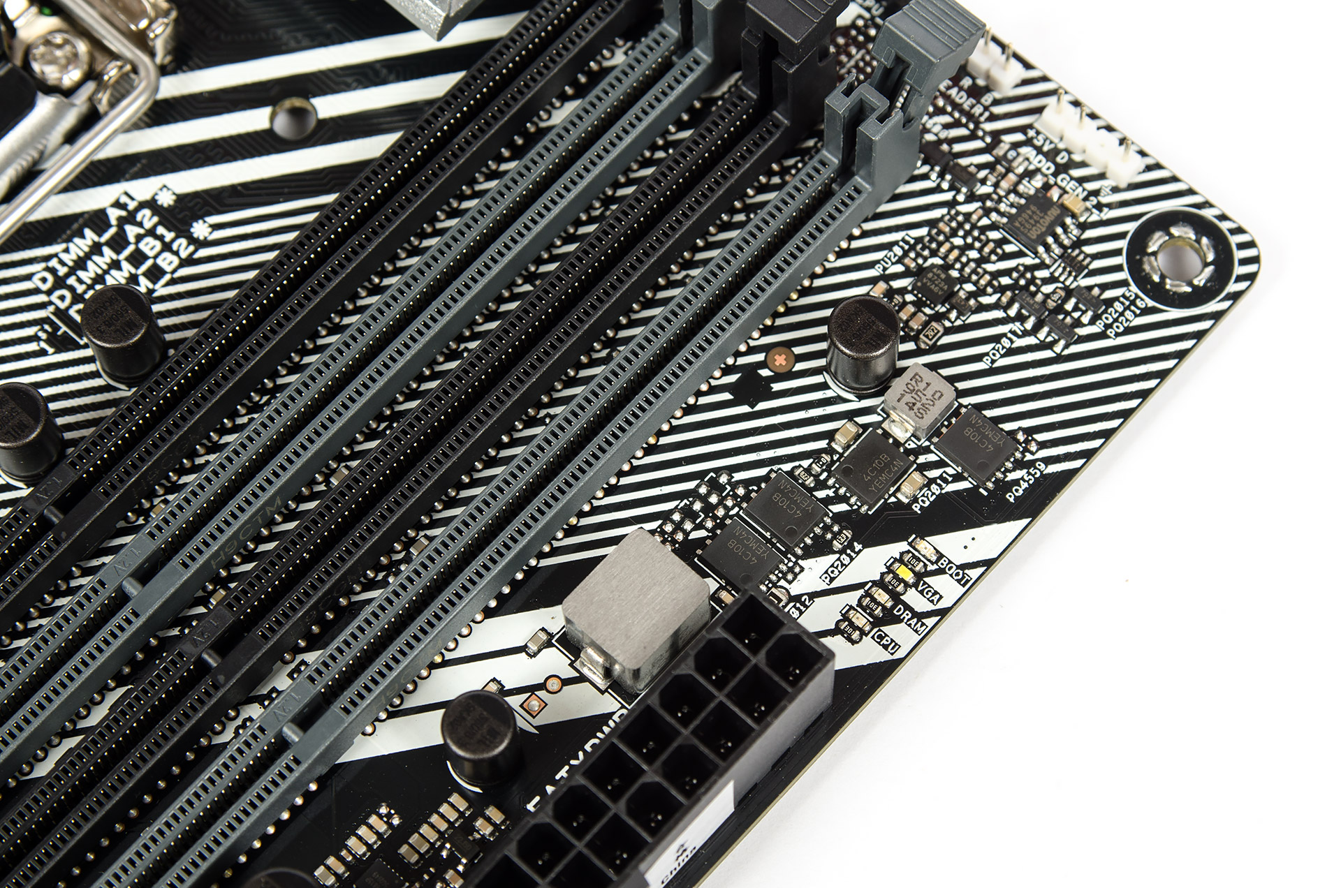 Диагностический уголок Q-LED расположился над основным гнездом питания, справа вверху.