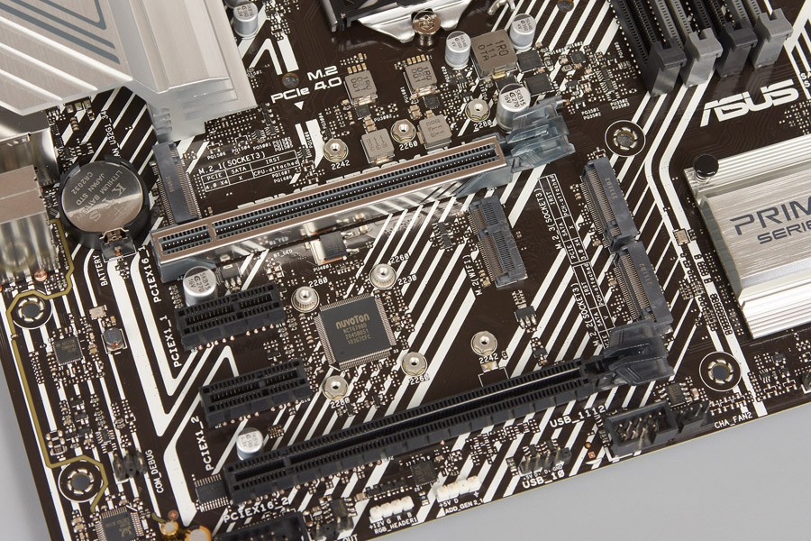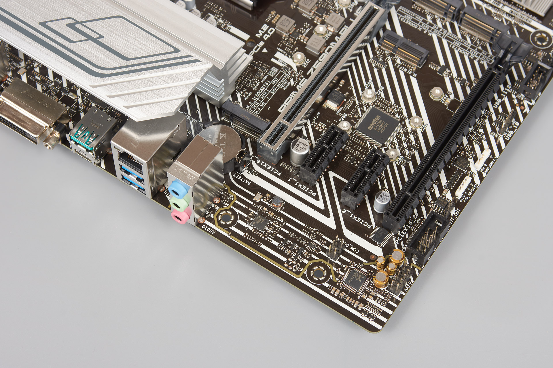 Нет пластикового козырька над задней панелью, нет подсветки, нет никаких кнопок или переключателей. То есть из «лишнего» нет вообще ничего, в то же время, следов каких-то упрощений выделить я тоже не могу. Тут кому-то может не хватить индикатора кодов POST или же хотя бы четырёх светодиодов Q-LED, которые в других платах упрощают базовую диагностику, но даже их не видно. Продукт под разовую сборку и настройку, так его задумали создатели. Синхронизация подсветки посредством Aura Sync будет опираться в том числе и на четыре разнотипных площадки для добавочного оборудования, если таковое окажется в составе сборки.