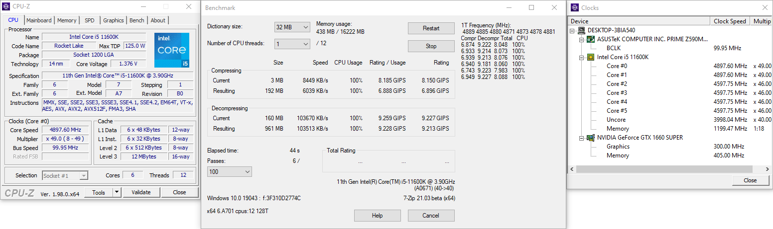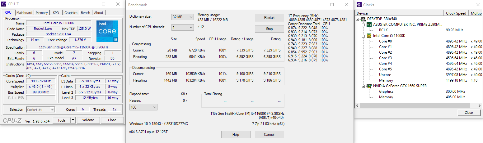 Ускорение любого ядра достигает 4,9 ГГц вместе с одним тестовым потоком в бенчмарке 7-Zip. Кольцевая шина функционирует на 4,0 ГГц.